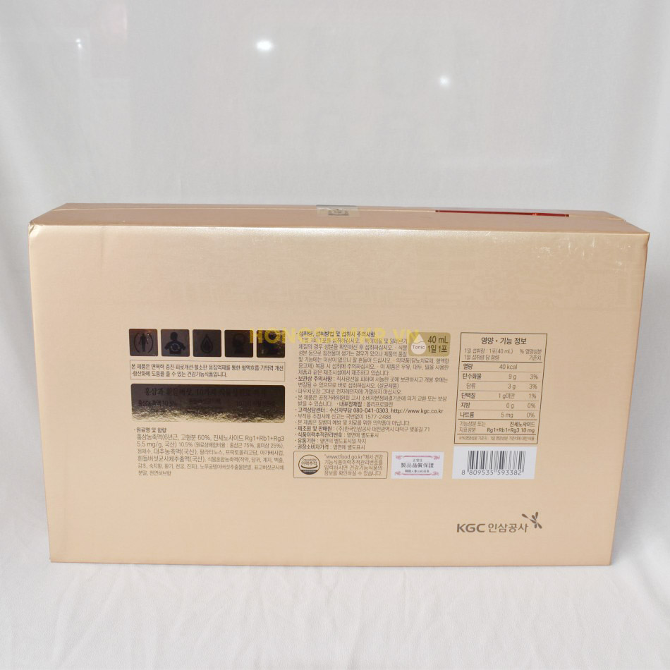 Nước Hồng Sâm Tonic Gold Cheong Kwan Jang Hàn Quốc 40ml x 30 Gói được sản xuất bởi tập đoàn Nhân Sâm Hàn Quốc Korea Ginseng Coporation và là tập đoàn duy nhất được chính phủ bảo trợ với cam kết chất lượng 100% hồng sâm nguyên chất 6 năm tuổi, là sản phẩm được nhiều khách hàng trên thế giới tin dùng.